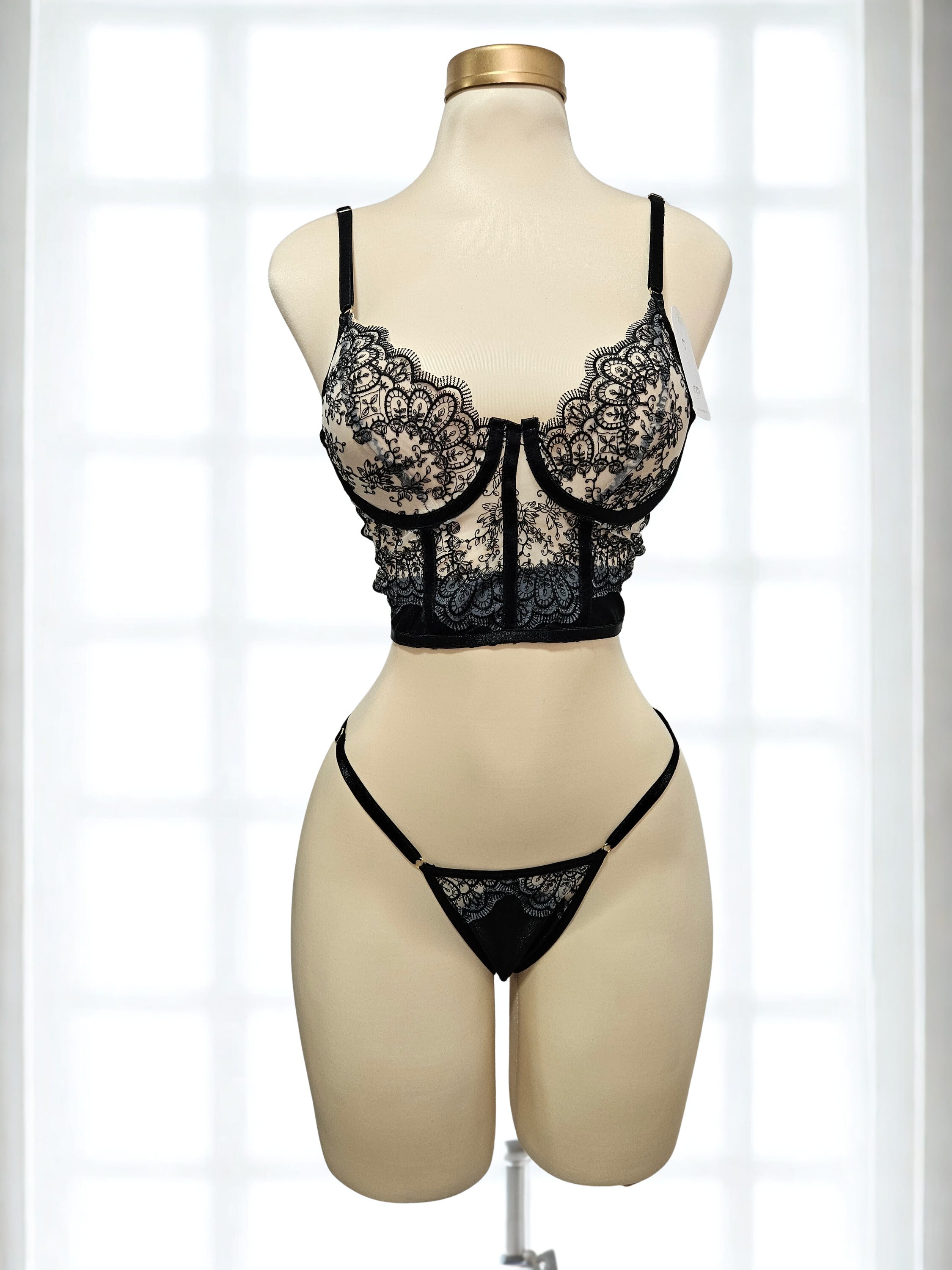 Hermoso set colombiano con encajes que resaltan la feminidad.
