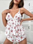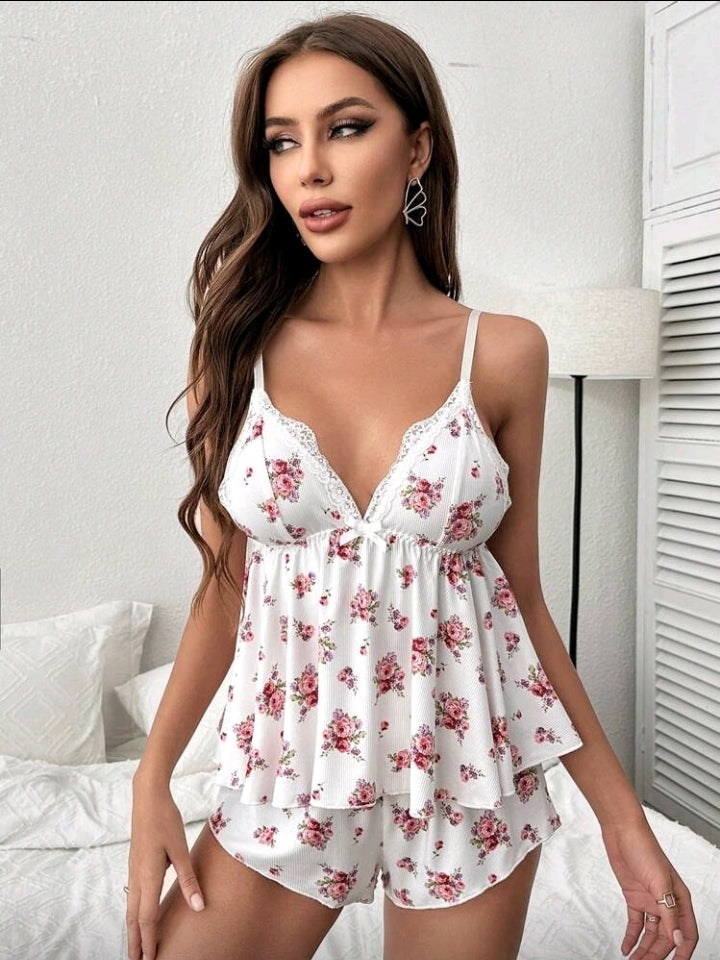 Pijama hermosa y ligera con short y top con escote. Es simplemente encantadora.